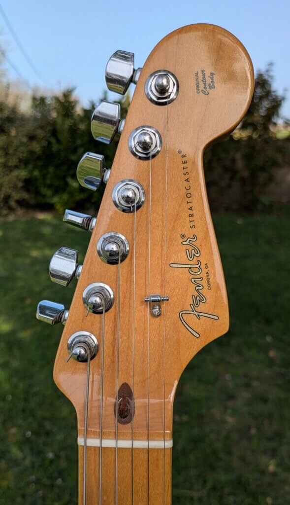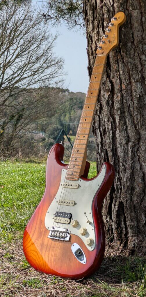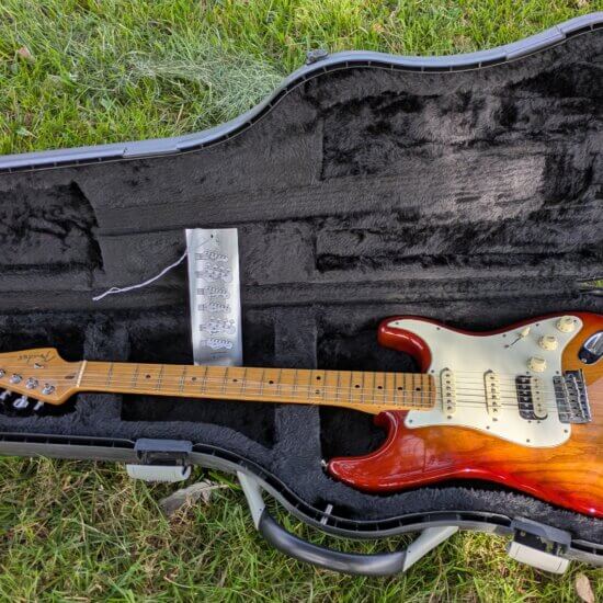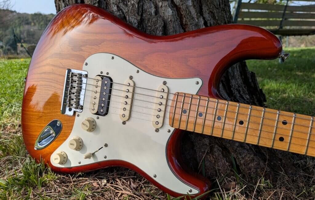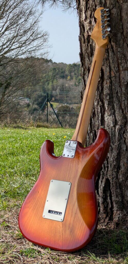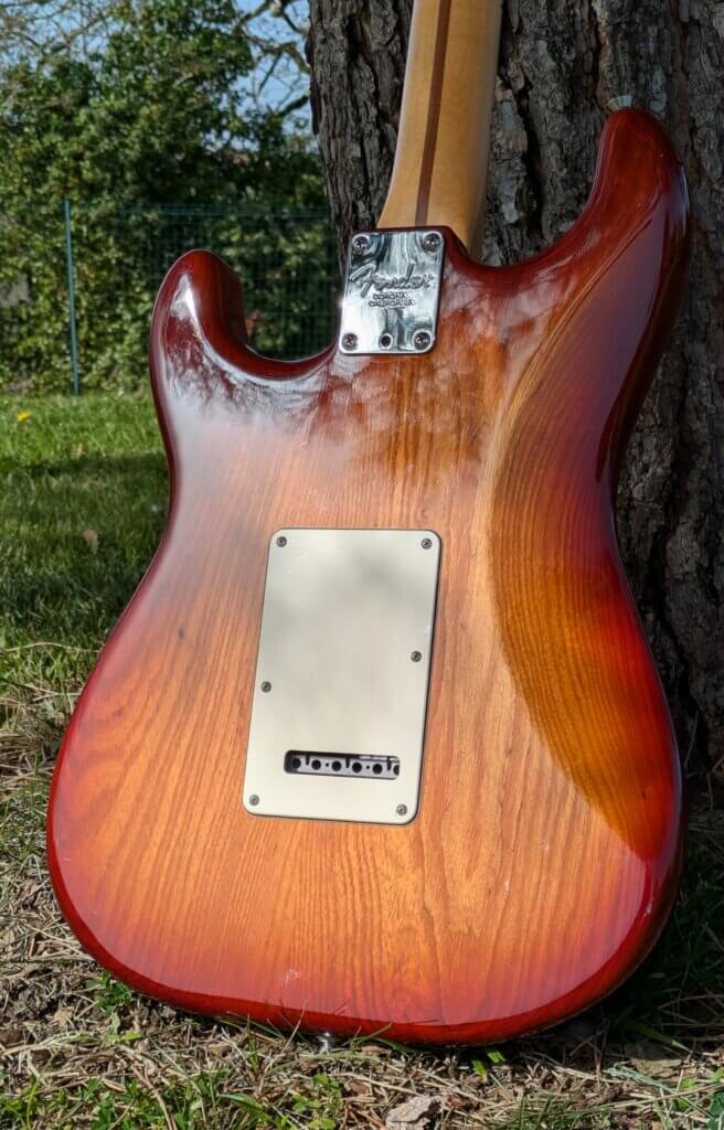 Superbe Sienna Sunburst en excellent état — une Strat moderne, polyvalente et haut de gamme, issue de la série qui a succédé aux American Standard avec de vraies améliorations techniques.